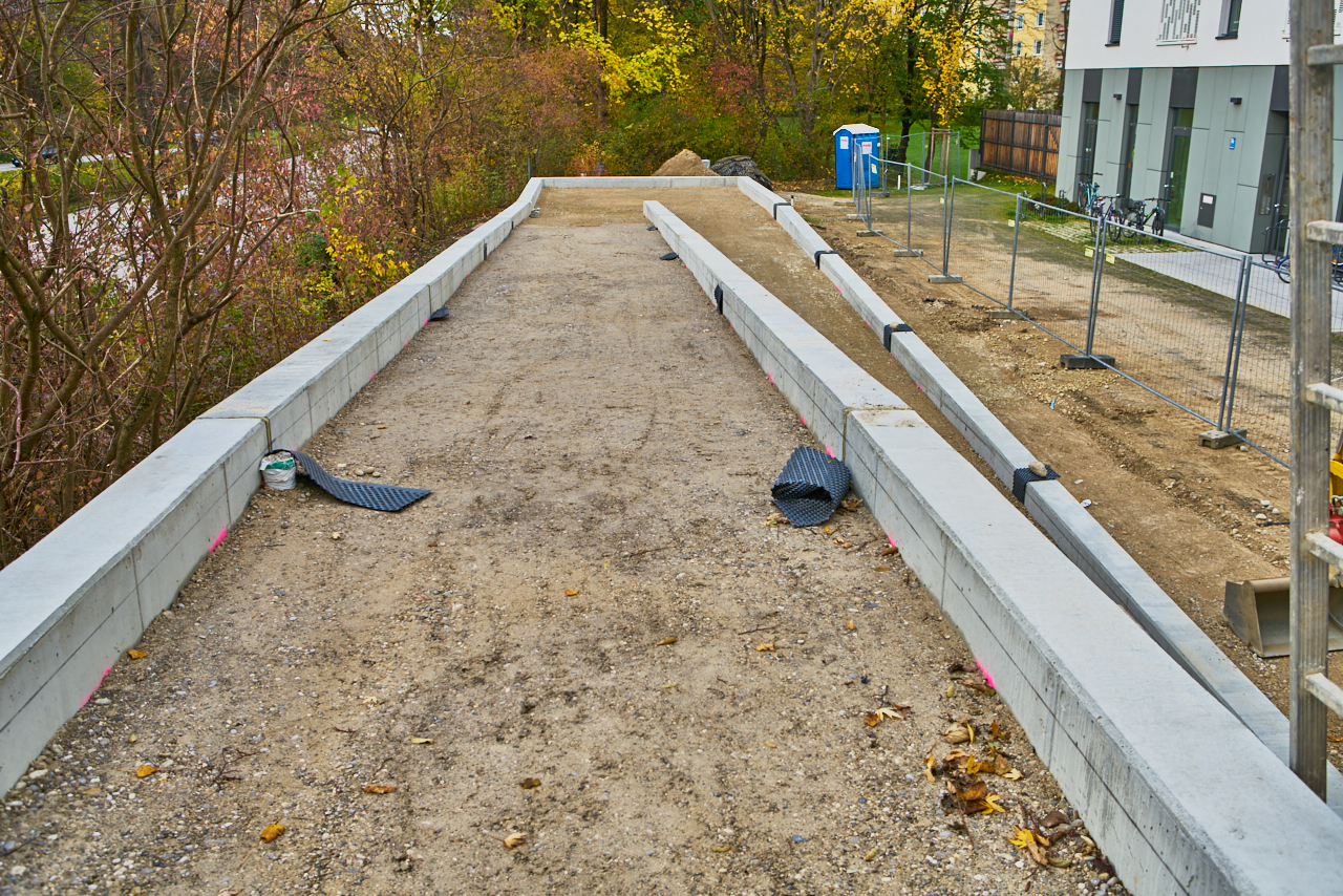 Gut zu sehen ist am heutigen Samstag den 04.11.2017, dass die neue Rampe, welche die Fehlplanung der alten Treppe ersetzten wird, eine moderate Steigung hat,