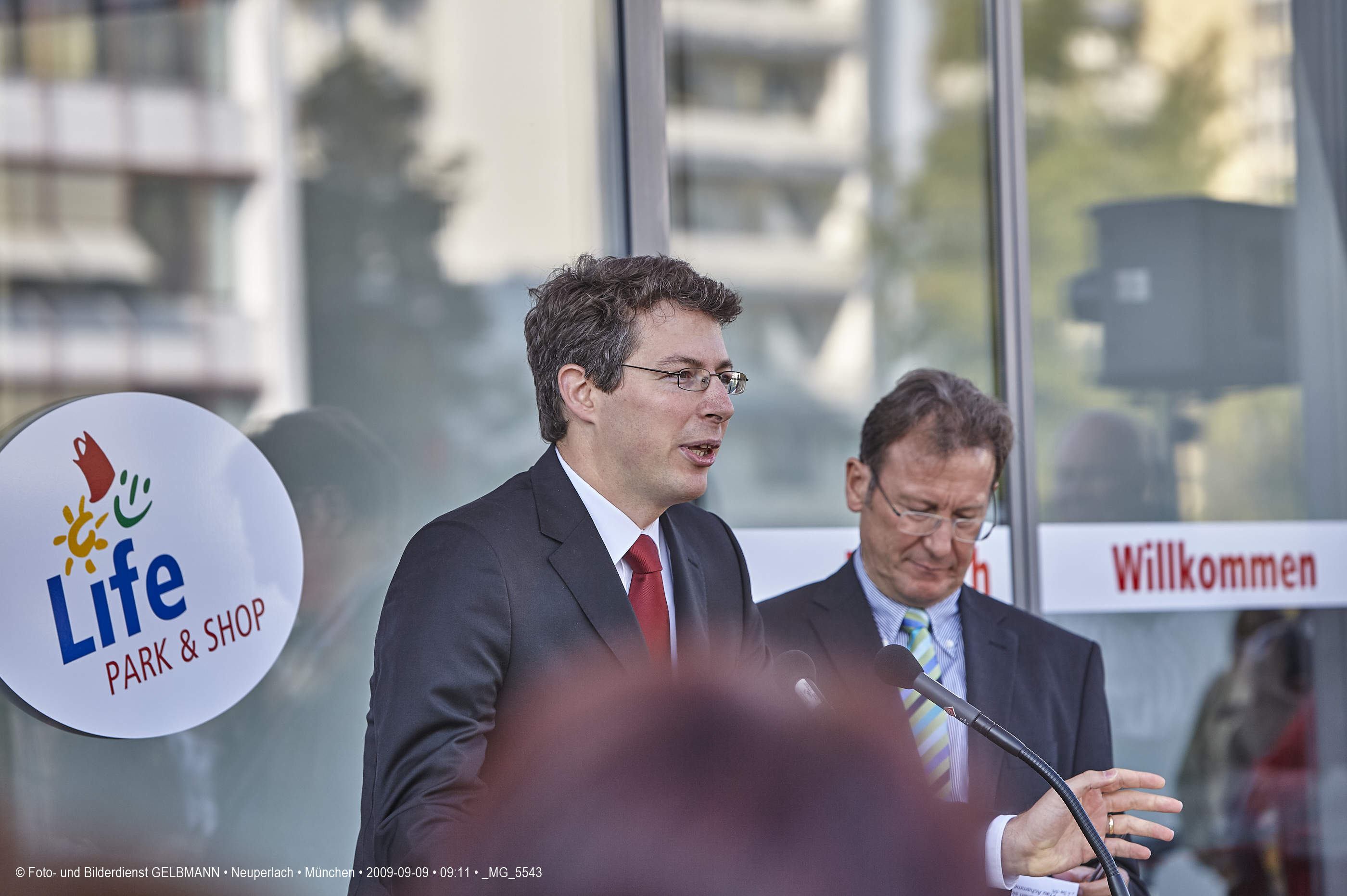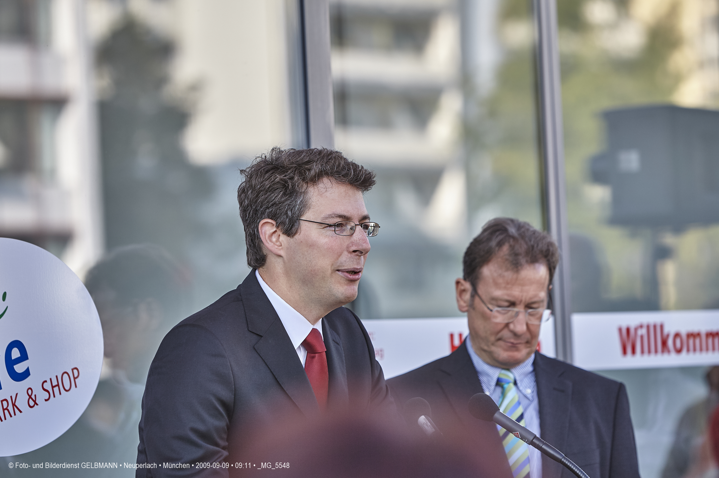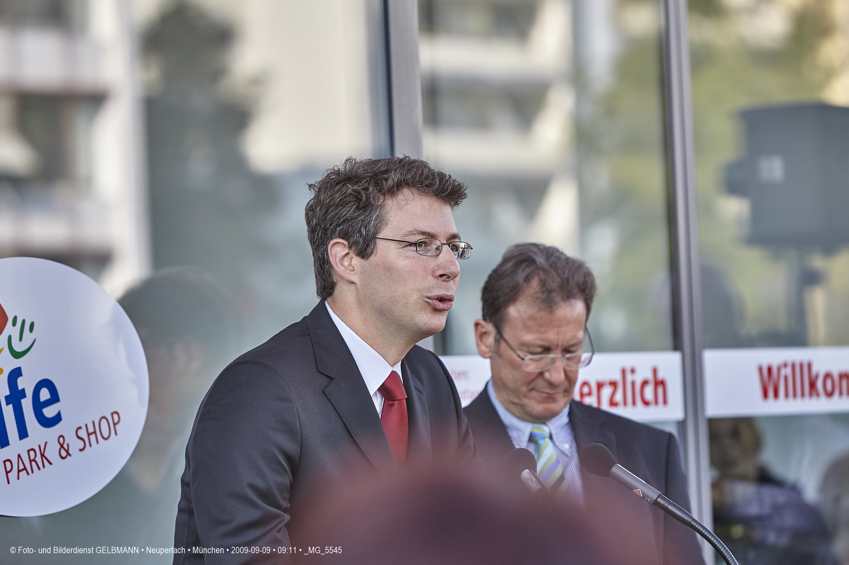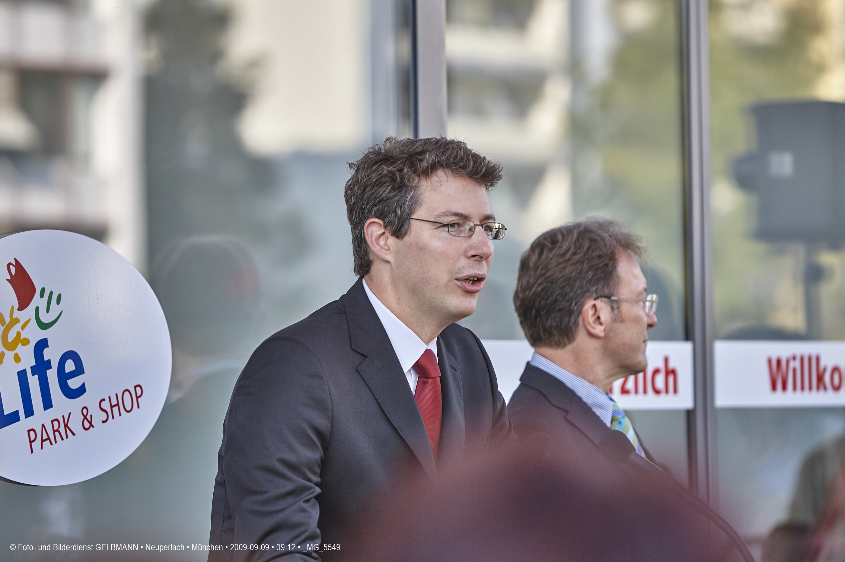 Gut zu sehen ist Markus Blume auch durch seine körperliche Größe auf der Eröffnung des Neuperlach Einkaufscenters „life“.