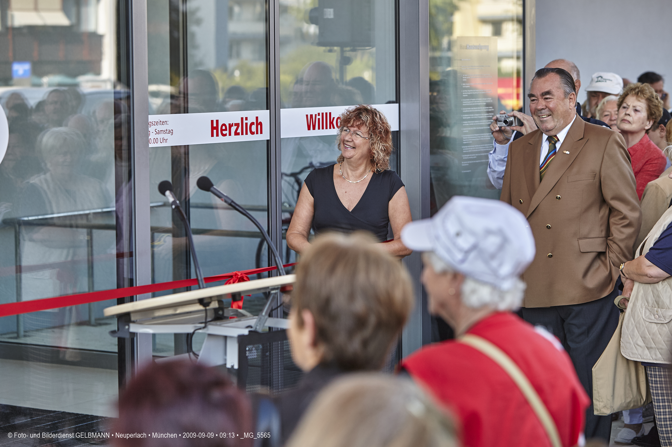 Kurz vor 09:09h nahm Frau Achhammer die Schere in die Hand um vor dem wartenden Publikum das Band zu zerschneiden. Das Publikum strömte in das „life“, vorbei an den Politikern, die sich hinter dem Rednerpult in Sicherheit gebracht haben.