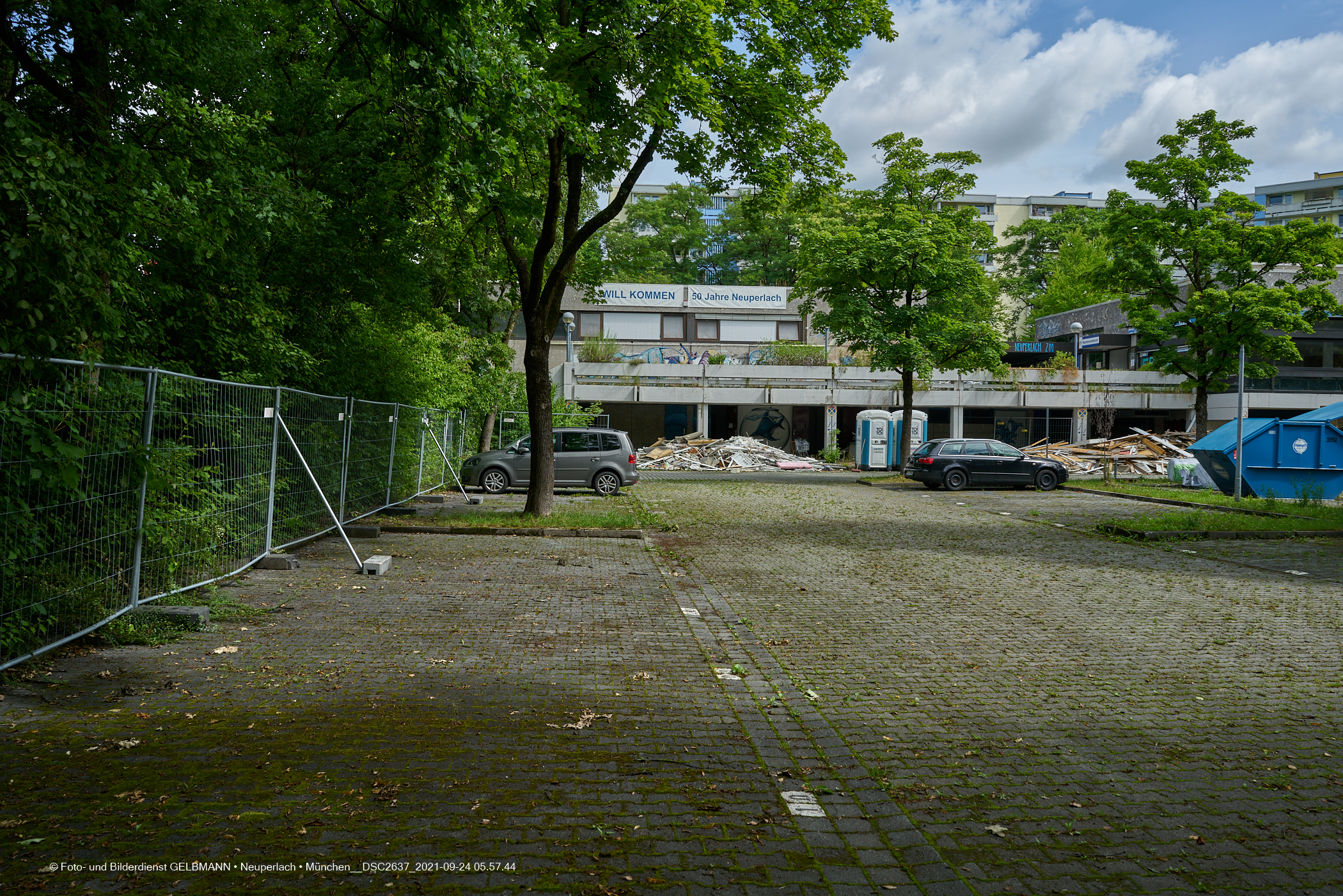 05.07.2021 - Der Abriss Quidde-Zentrum hat begonnen. Zuerst werden von den Handwerkern, Entkernungsarbeiten im Inneren durchgeführt. Holz und andere Wandverkleidung wurden auf den Parkplatz geworfen und dort sortiert.