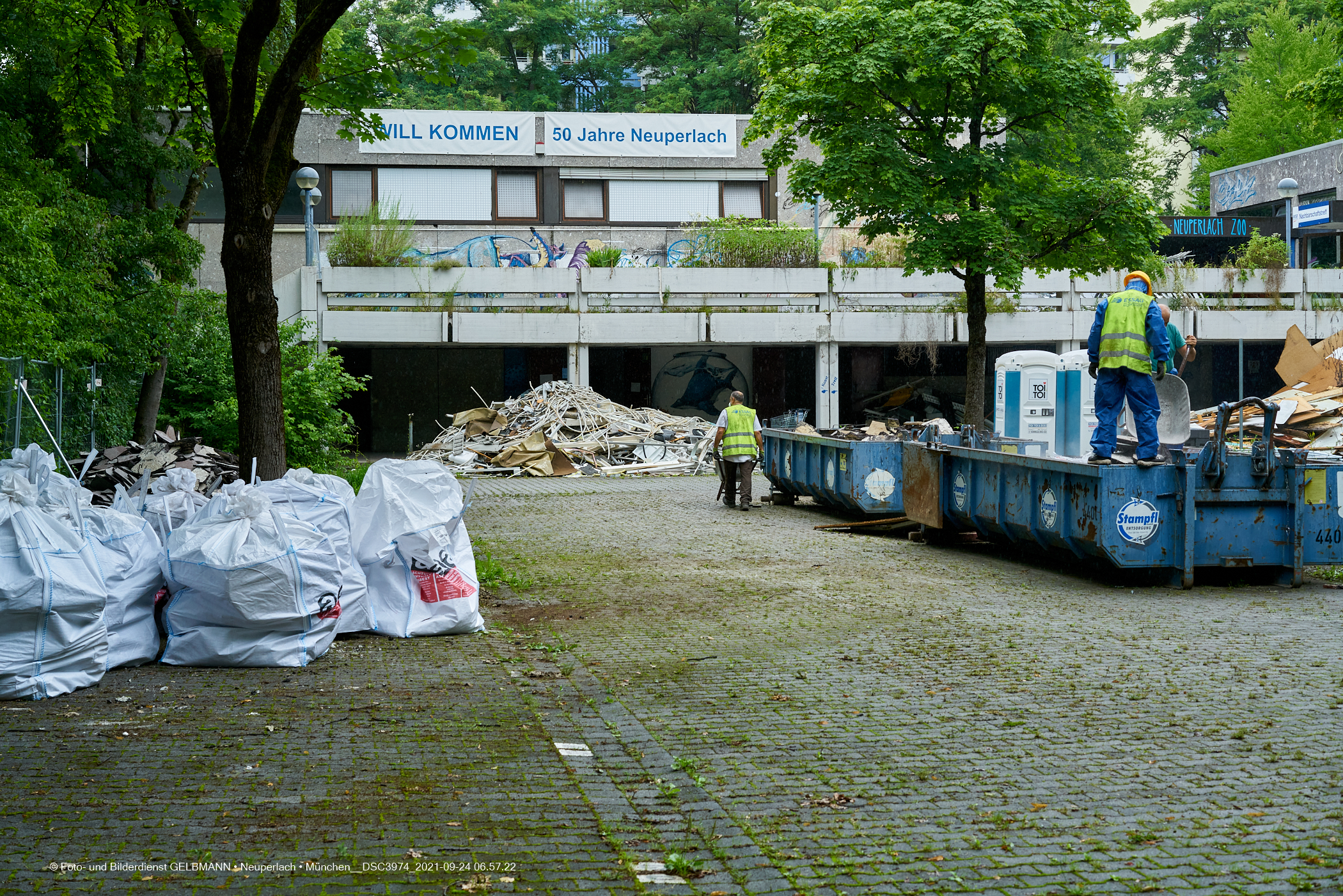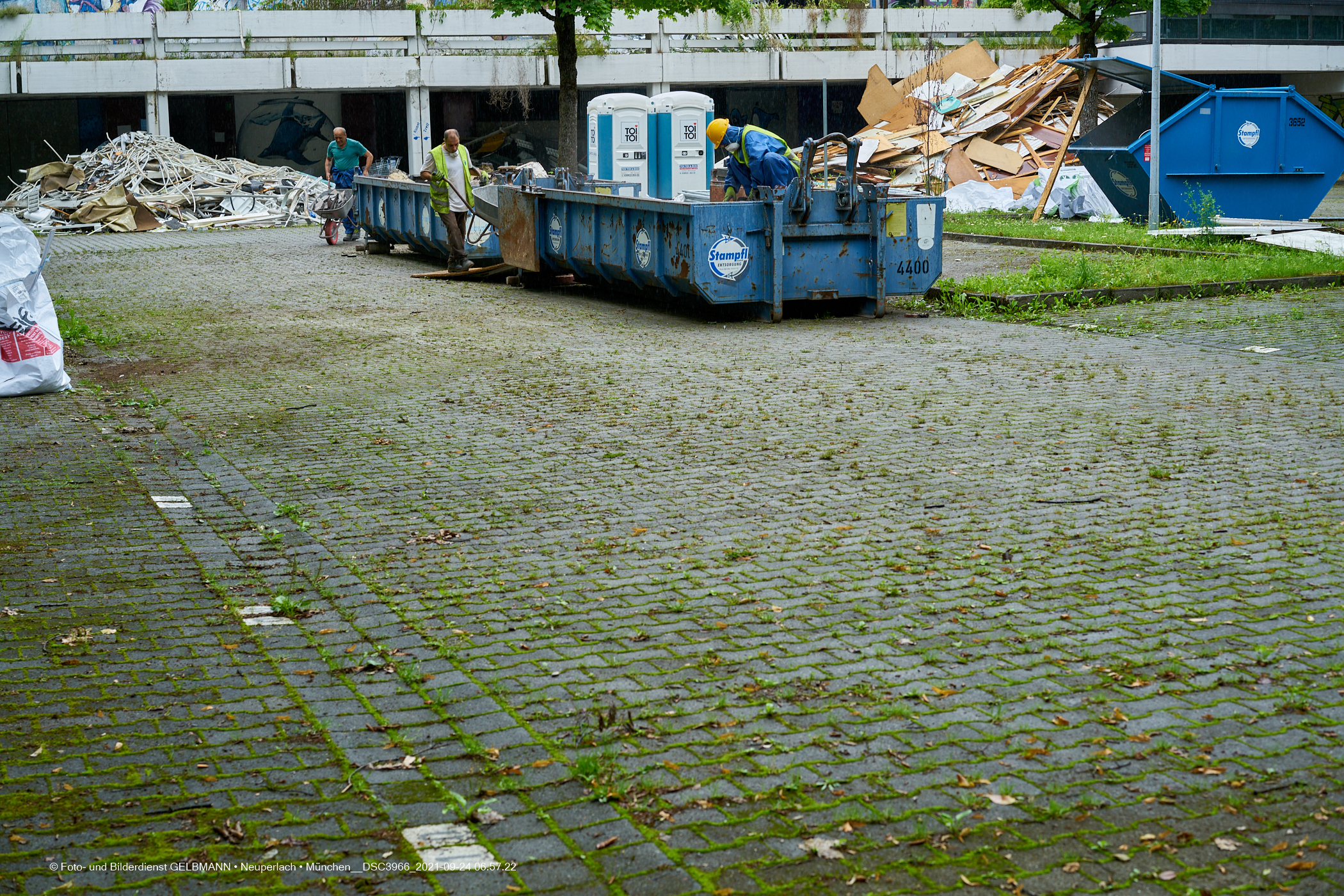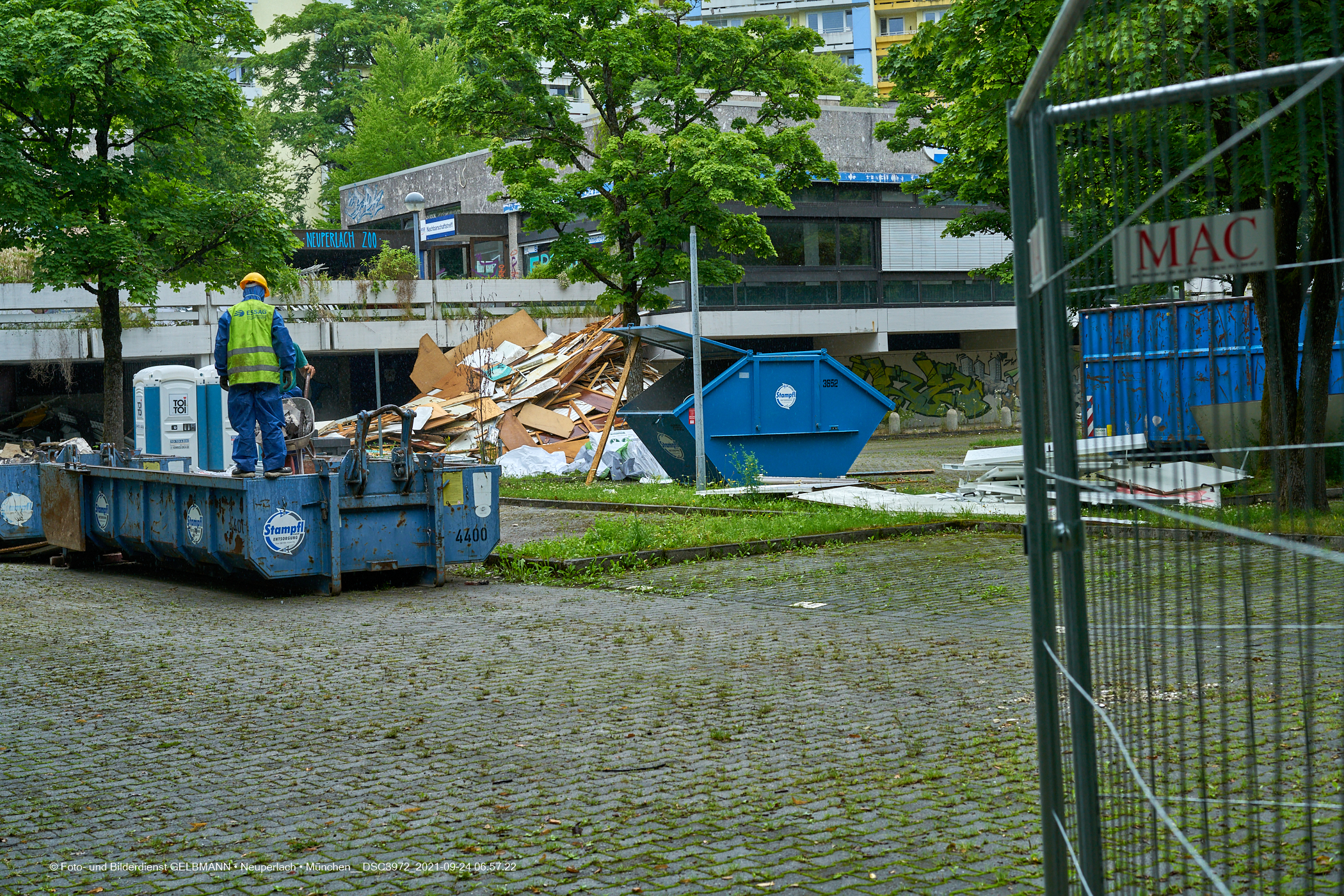 15.07.2021 - Der Abriss Quidde-Zentrum hat begonnen. Bauarbeiter räumen den Innenraum leer.