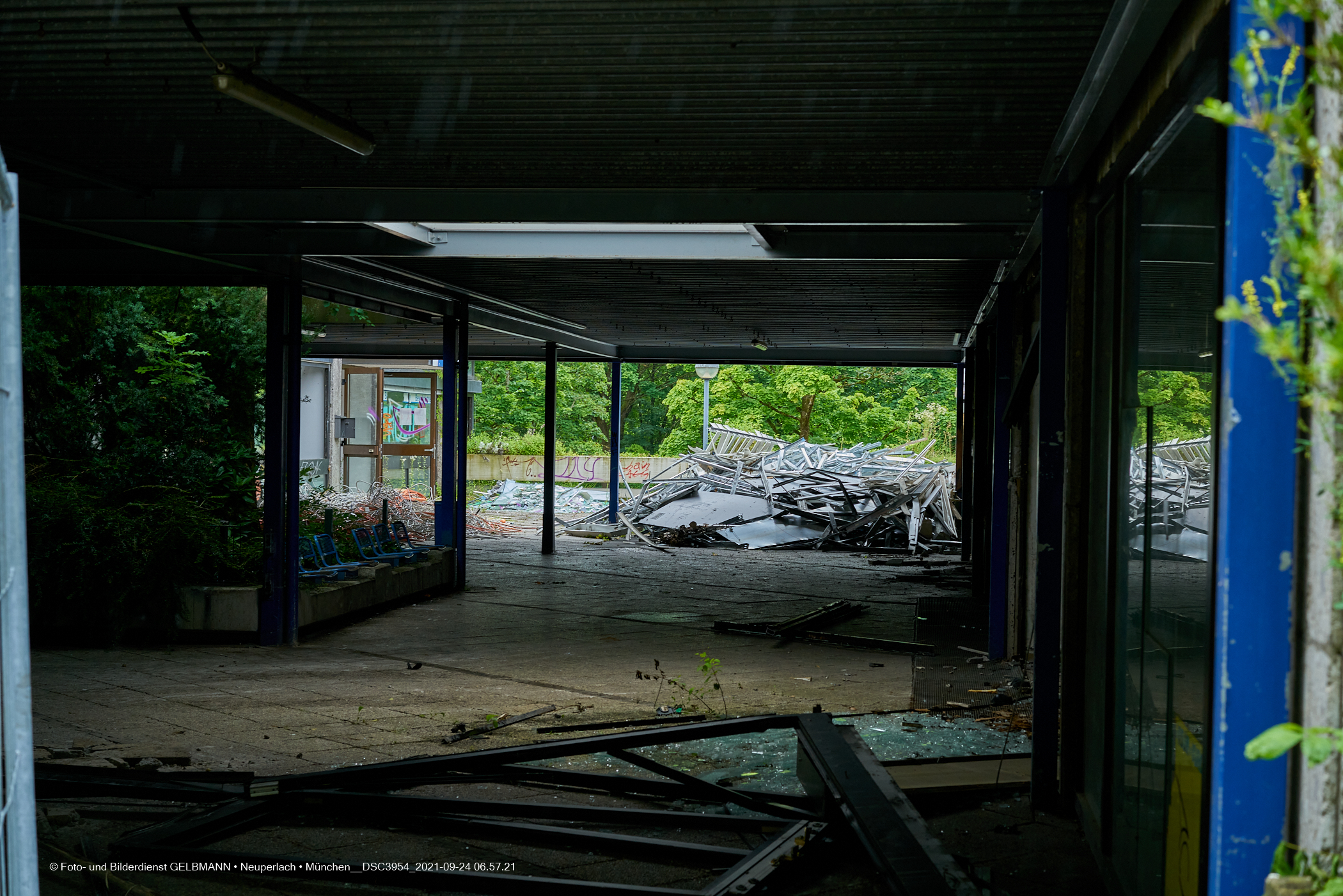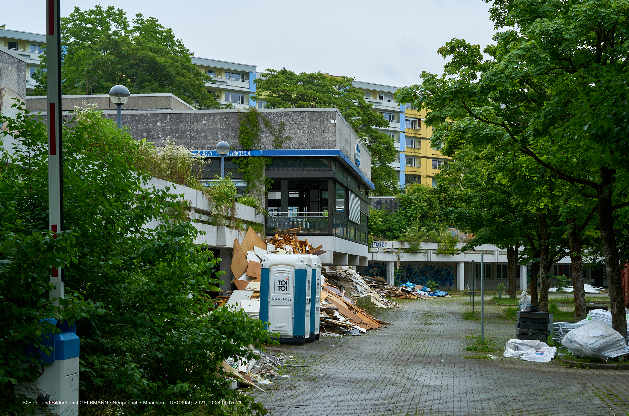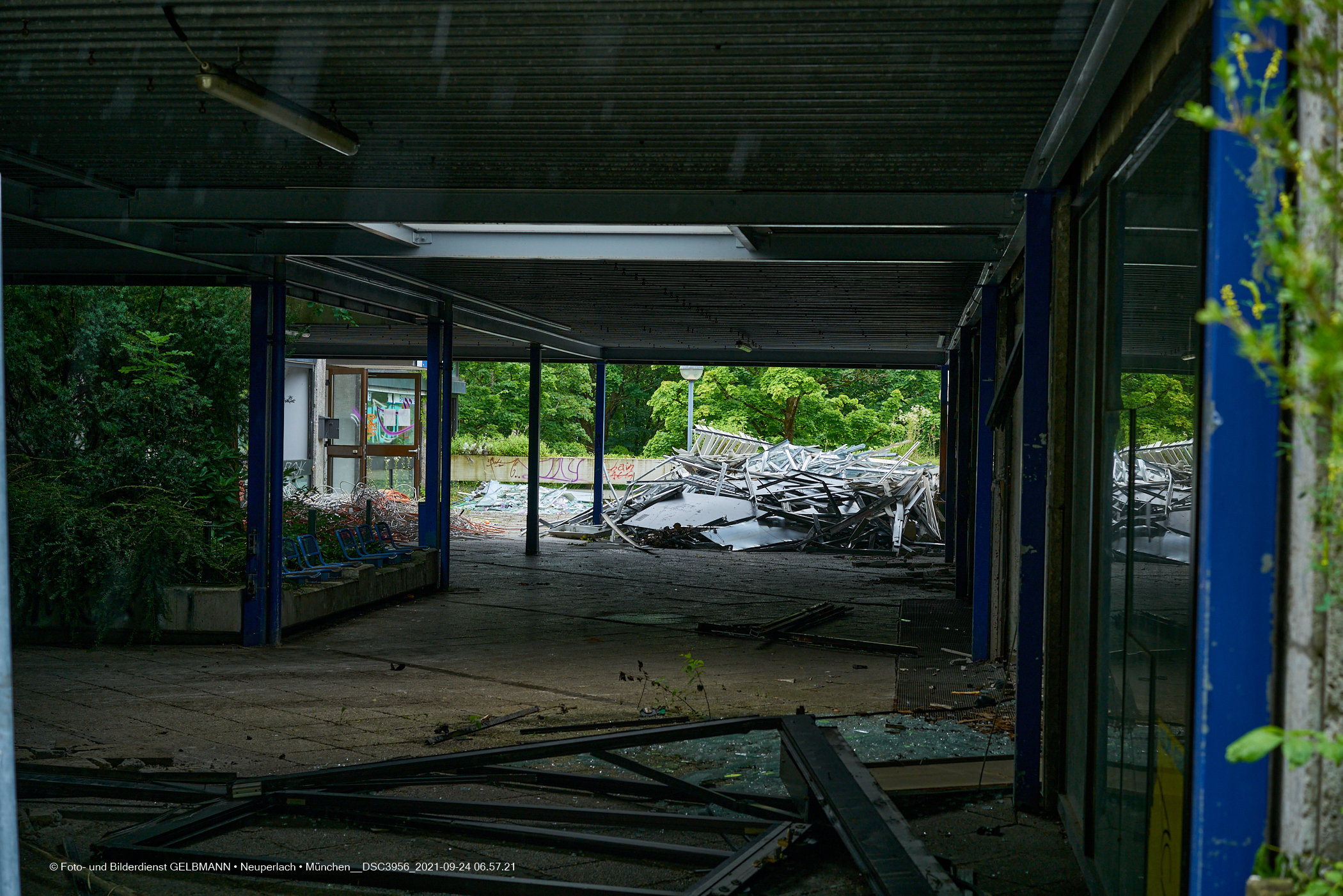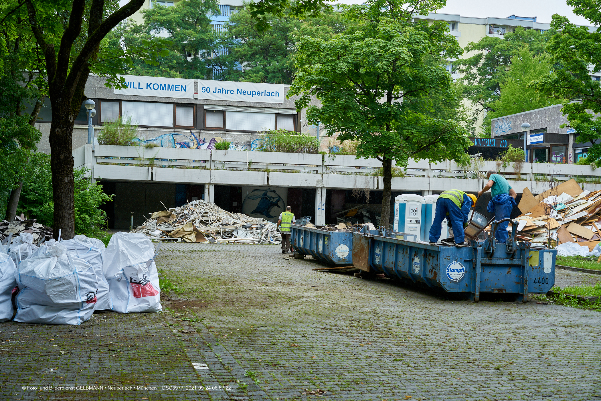 15.07.2021 - Der Abriss Quidde-Zentrum hat begonnen. Bauarbeiter räumen den Innenraum leer.