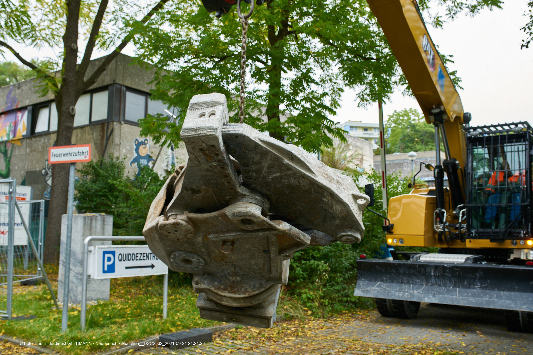 Der Abriss hat begonnen. Wie im RIS zu lesen ist, wurden schwere Geräte auf die Abrissbaustelle Quiddezentrum gebracht, es waren zwei Bagger und drei schwere Zangen. Die Zange auf den Fotos von neuperlach.org.gelbmann.org, ist die mittlere und wiegt 2t. Mit dieser Zange ging es heute, am 20.09.2021 los. Wie immer informiert neuperlach.org.gelbmann.org über aktuelle Ereignisse in München. Mehr dazu unter: https://gelbmann.de/blog.html