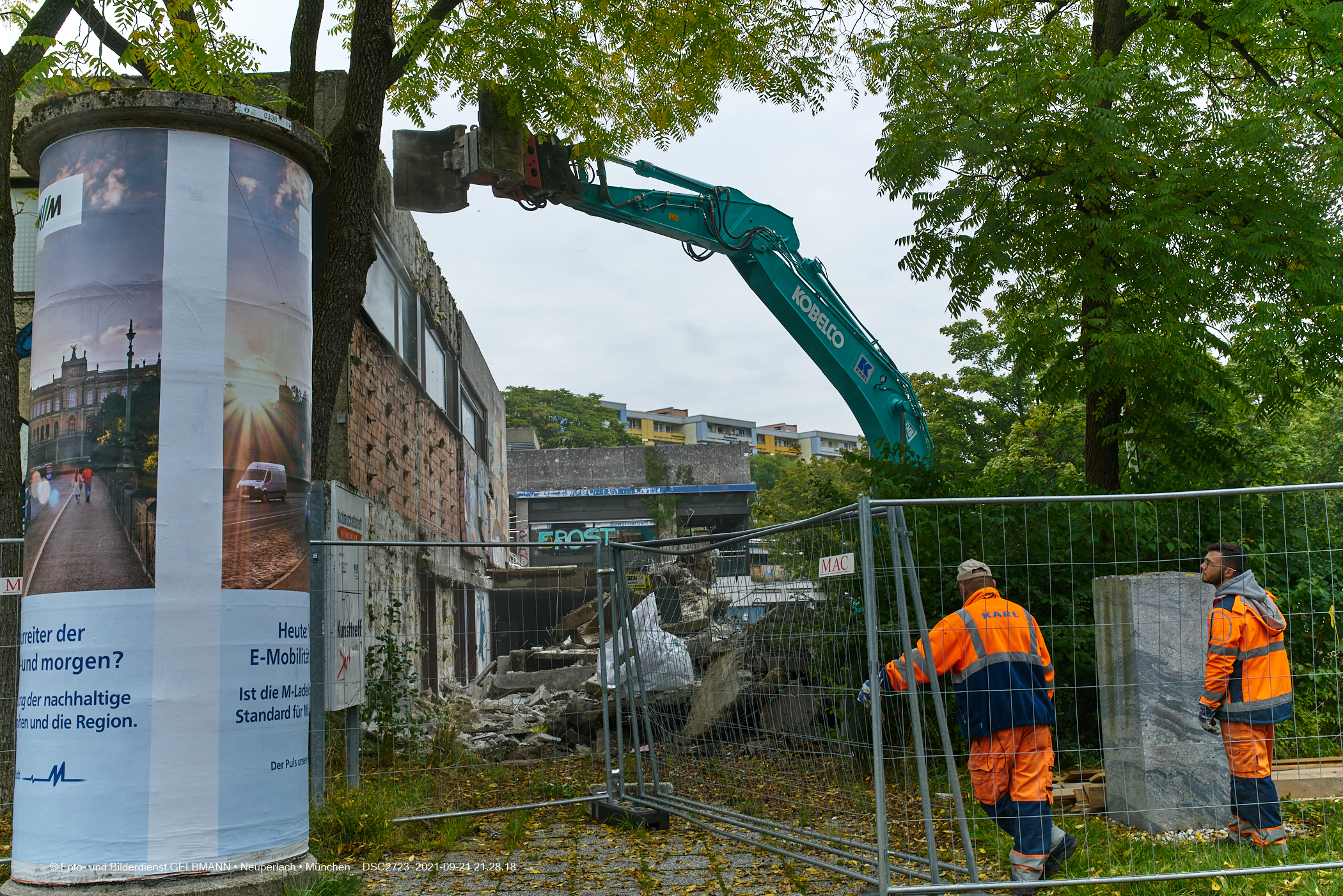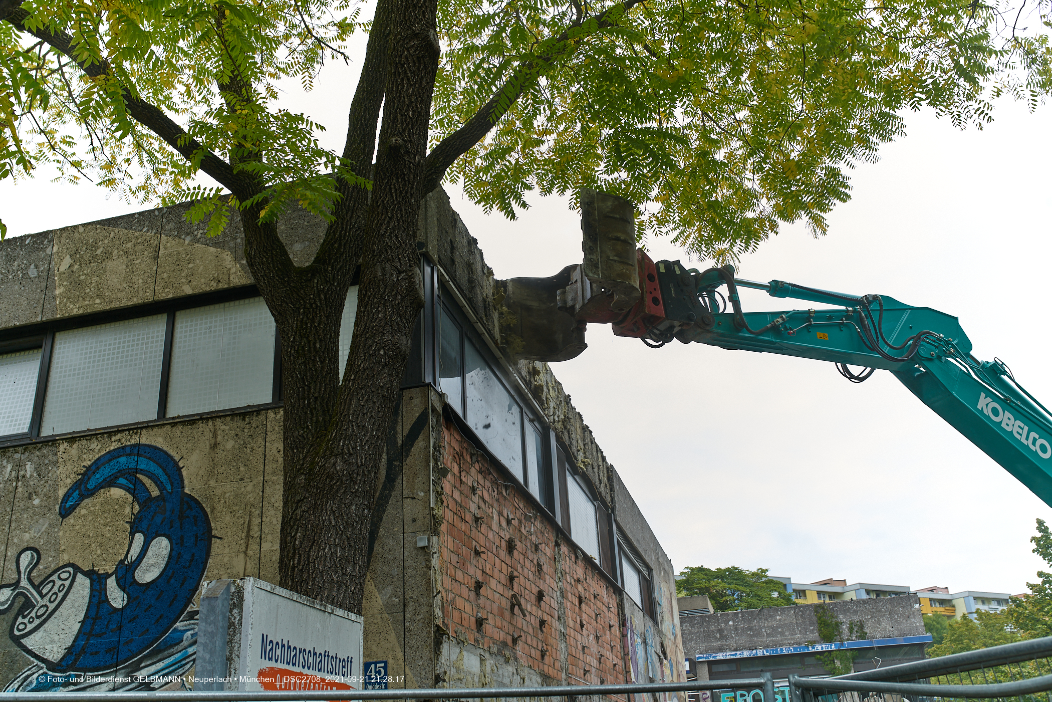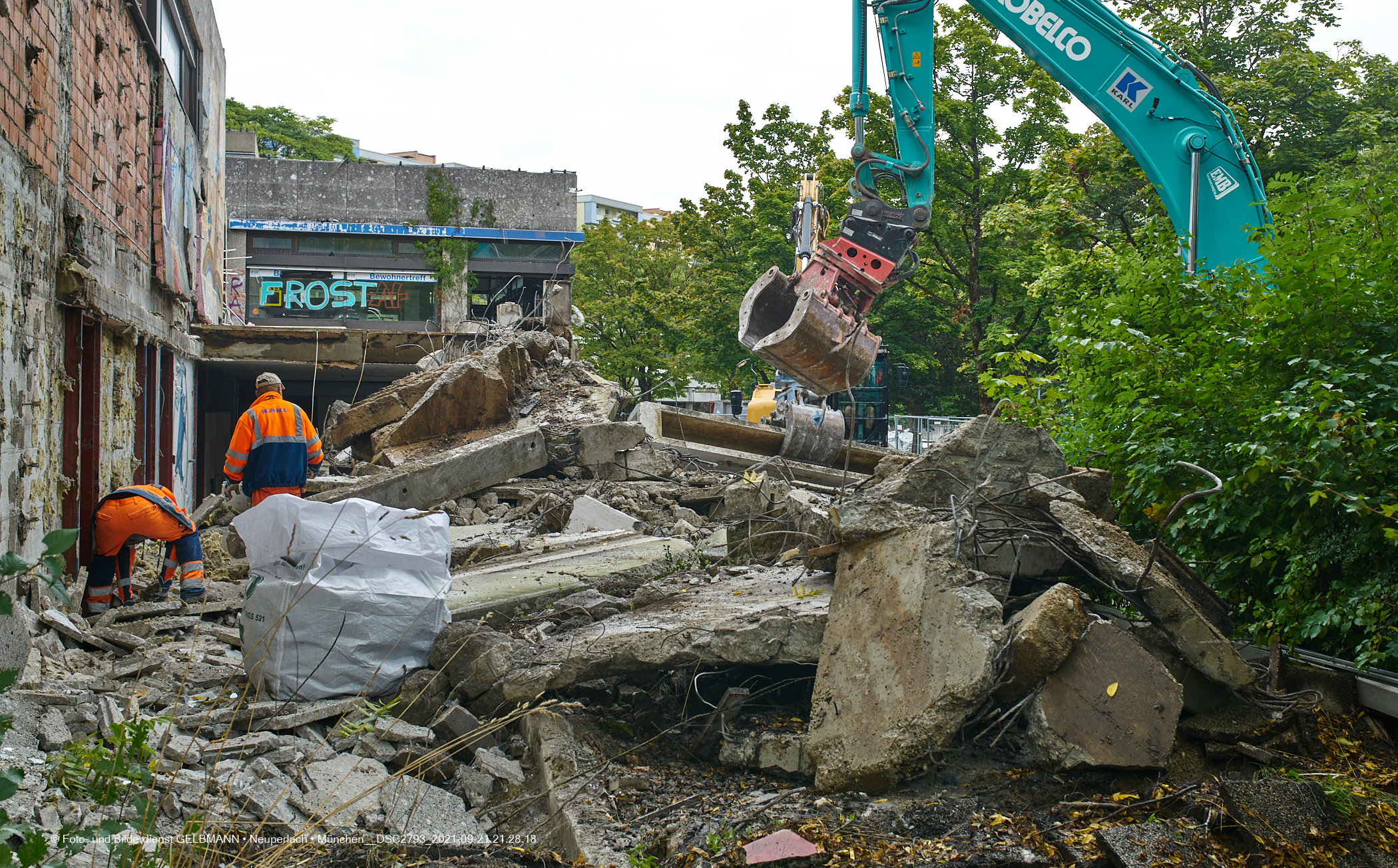 Der Abriss hat begonnen. Wie im RIS zu lesen ist, wurden schwere Geräte auf die Abrissbaustelle Quiddezentrum gebracht, es waren zwei Bagger und drei schwere Zangen.