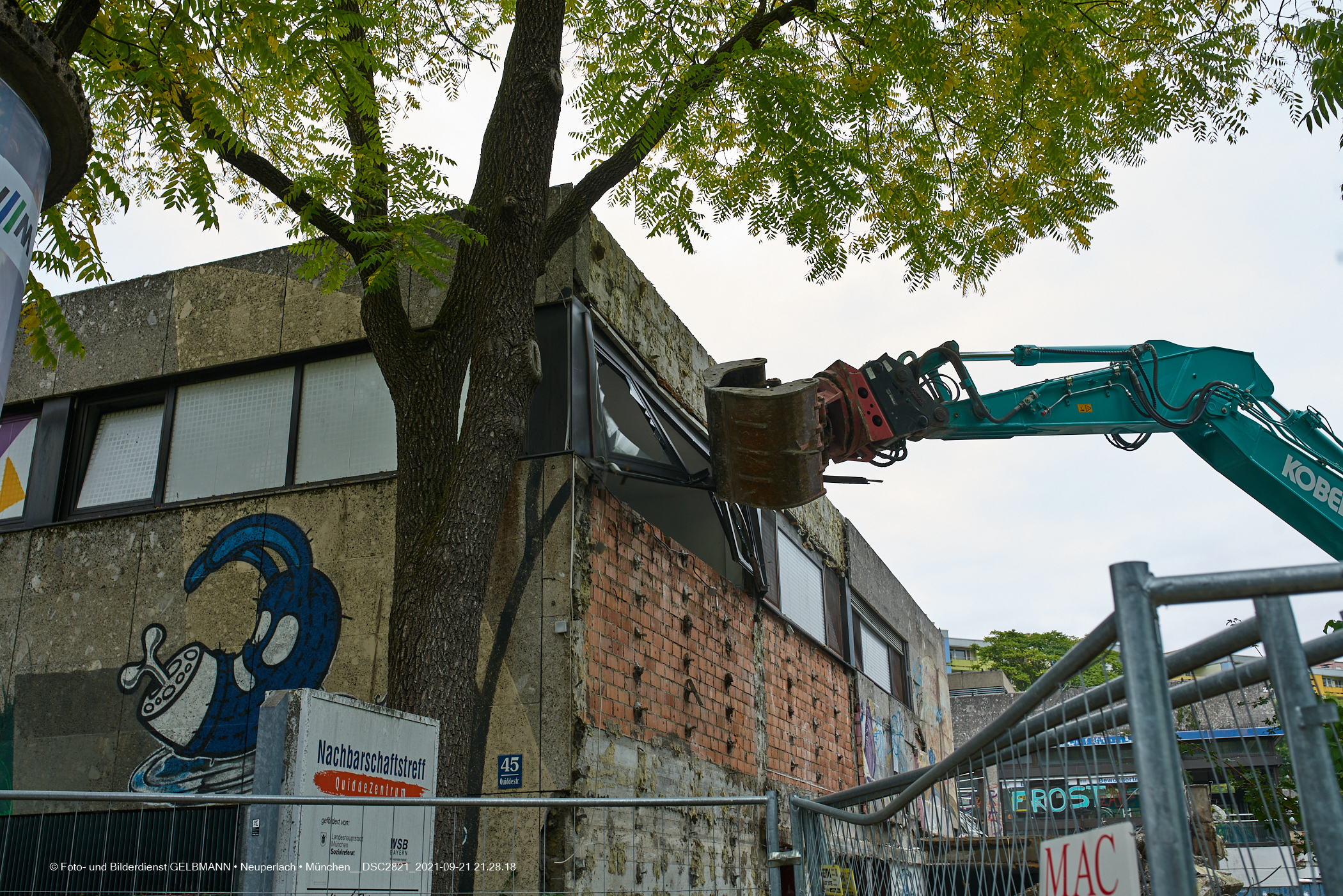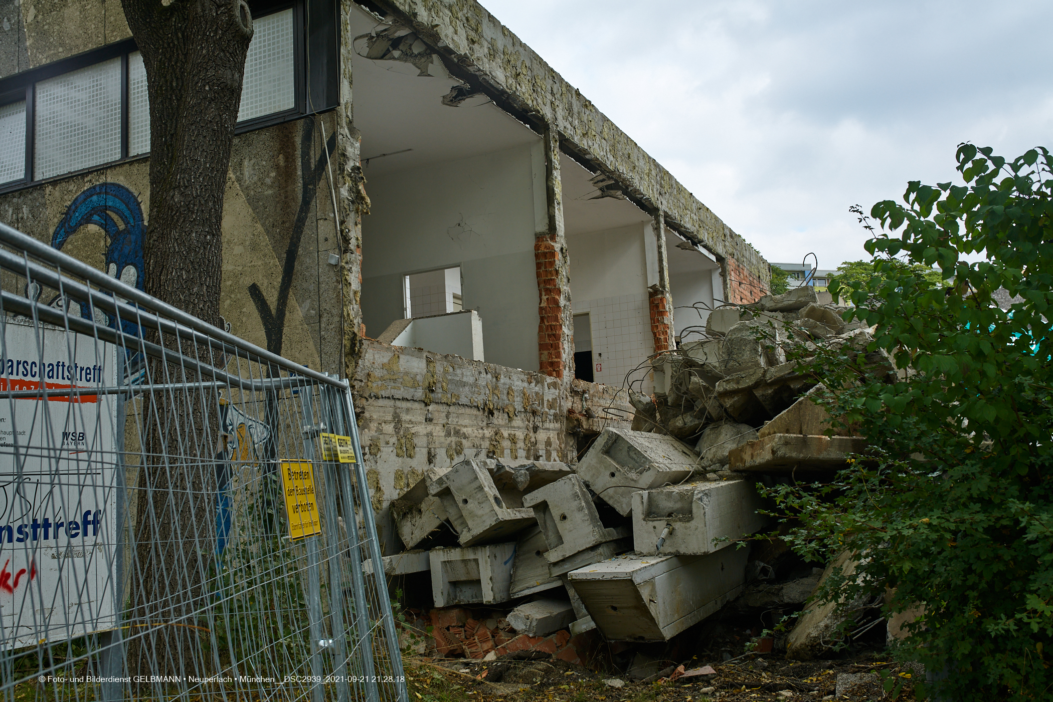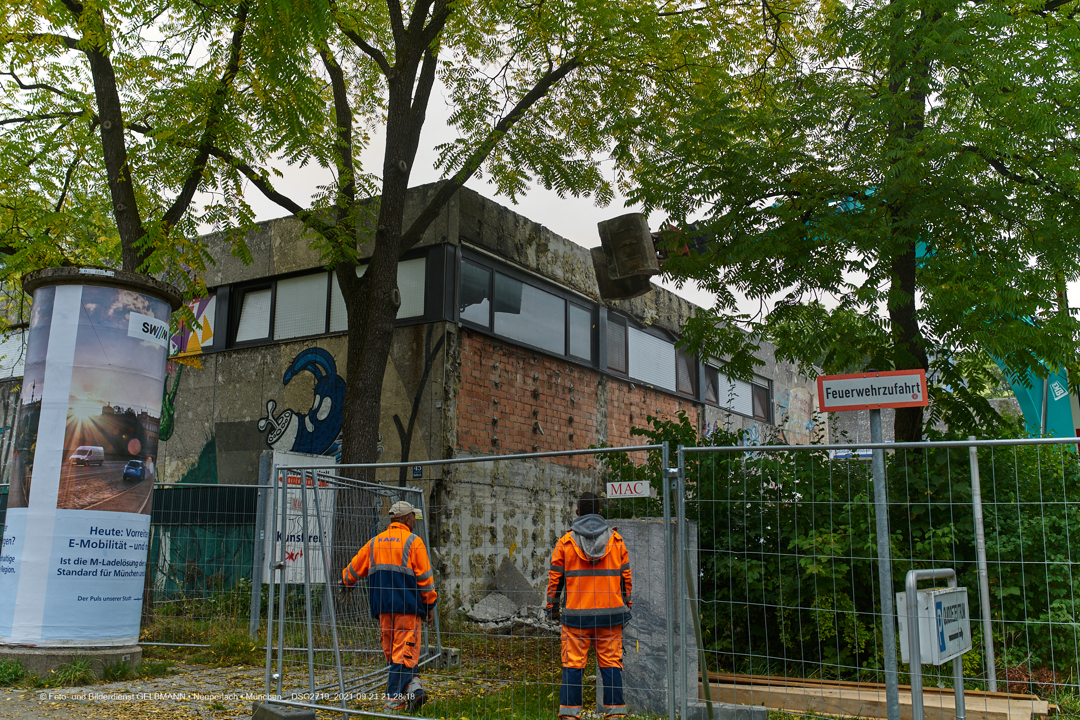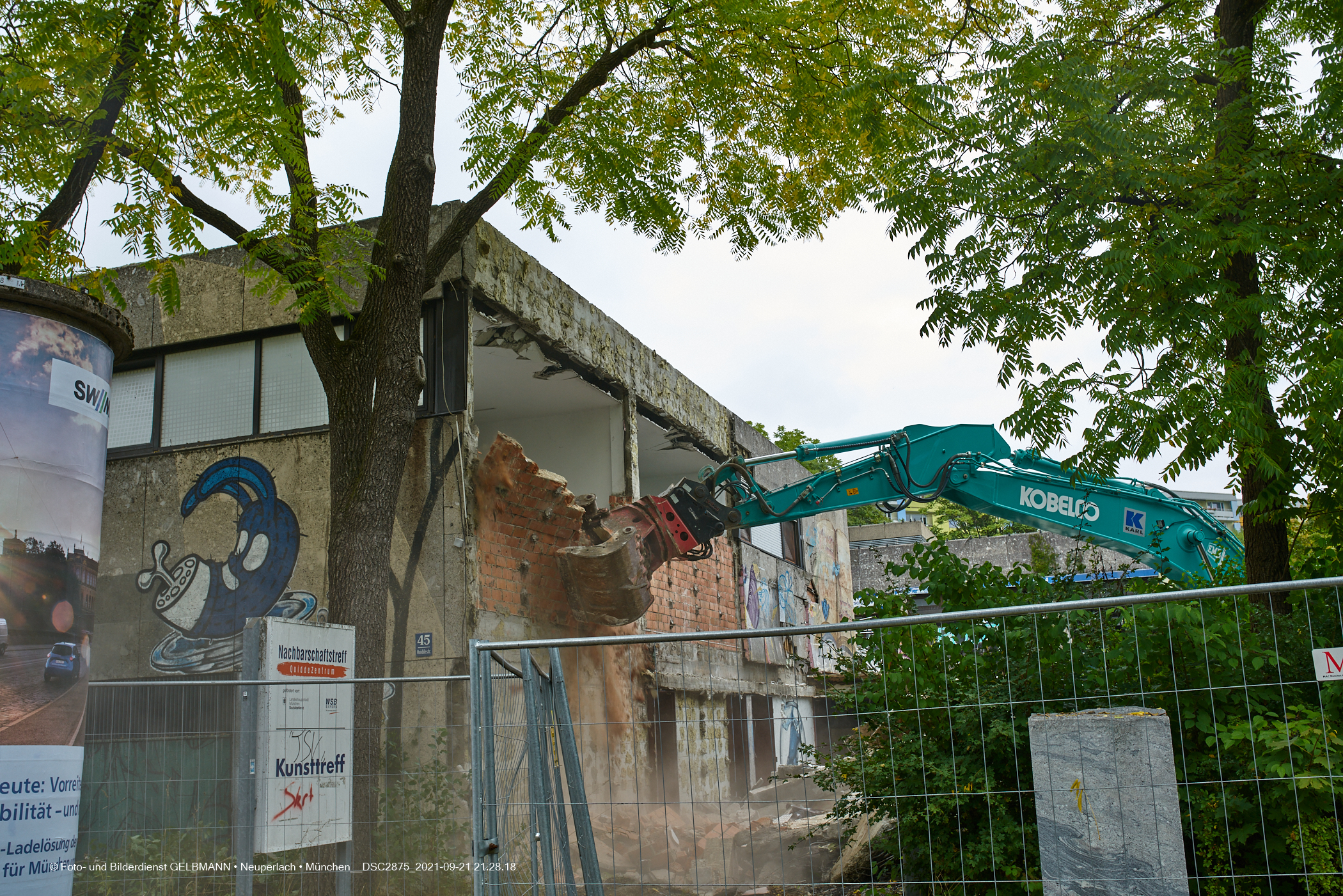 Der Abriss hat begonnen. Wie im RIS zu lesen ist, wurden schwere Geräte auf die Abrissbaustelle Quiddezentrum gebracht, es waren zwei Bagger und drei schwere Zangen.
