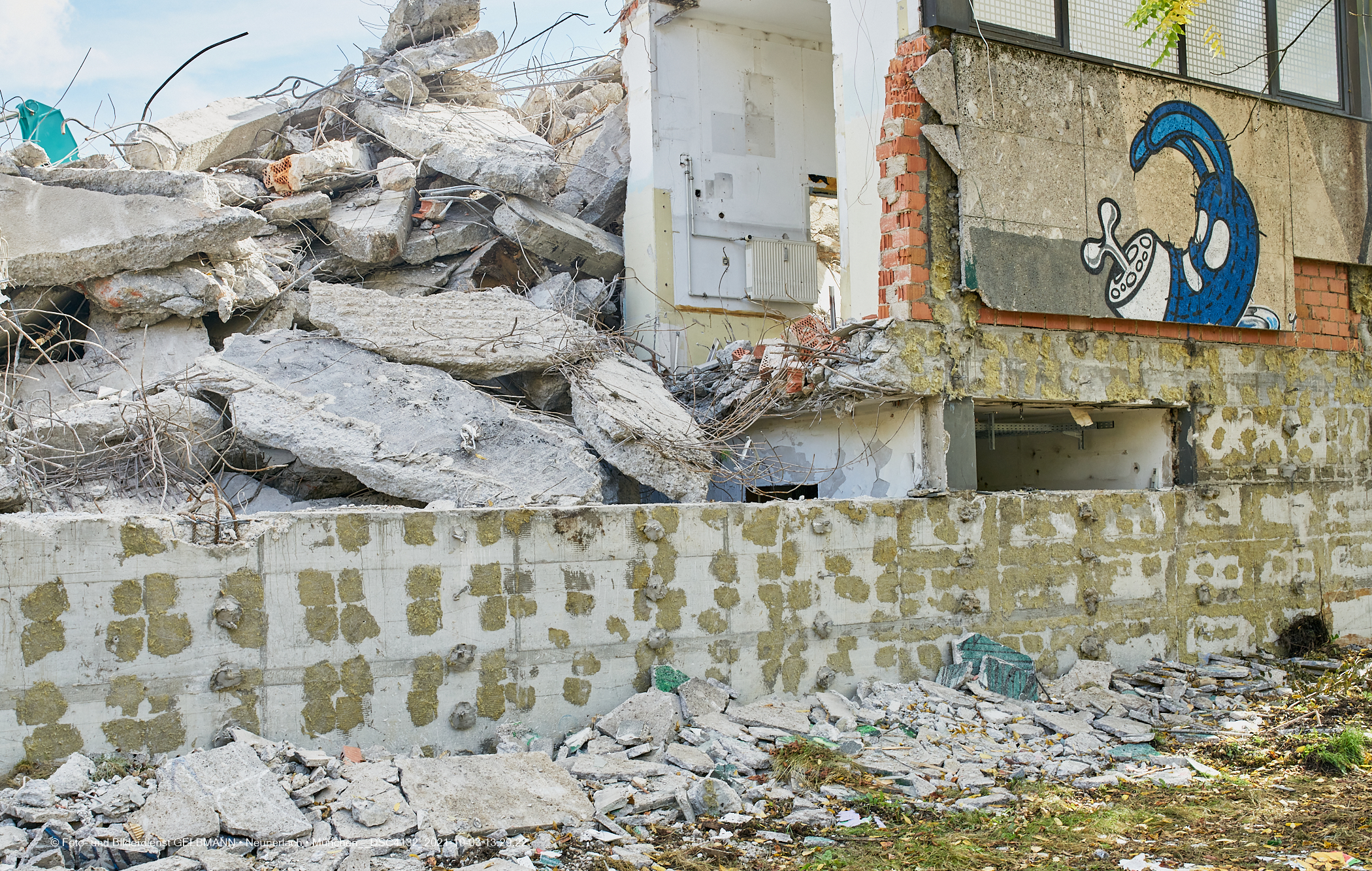 Die ersten Gebäude des Quiddezentrums sind schon Abgerissen. Impressione vom heutigen TAg.