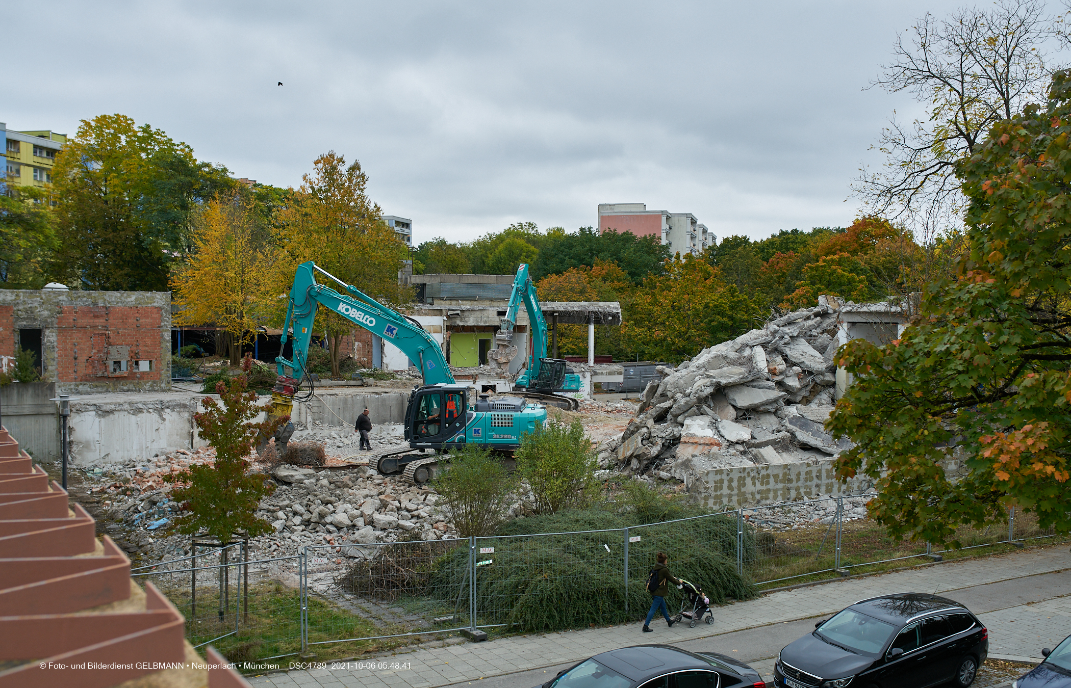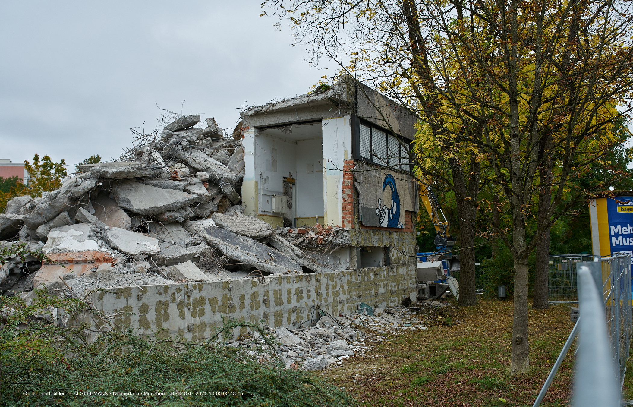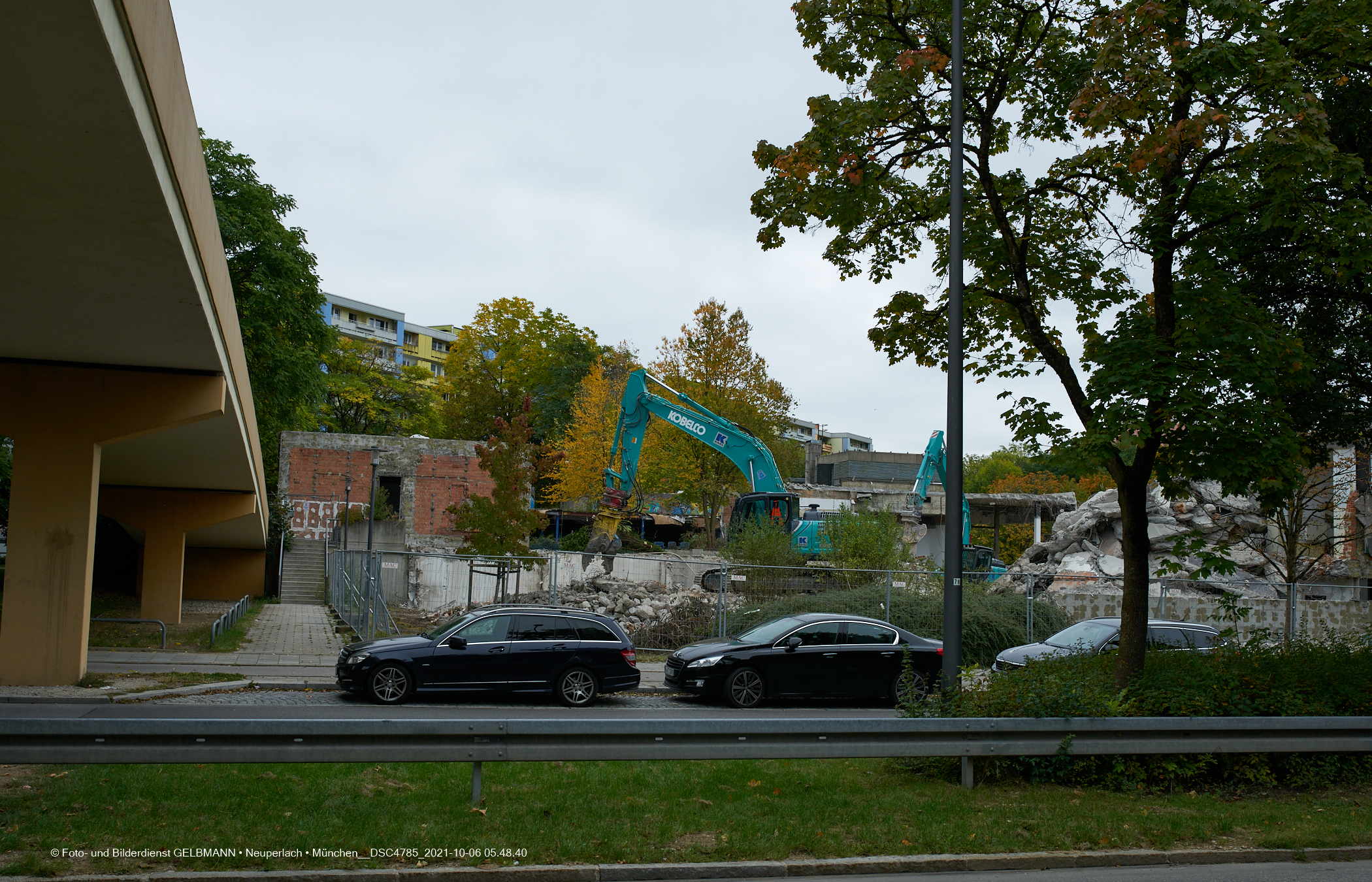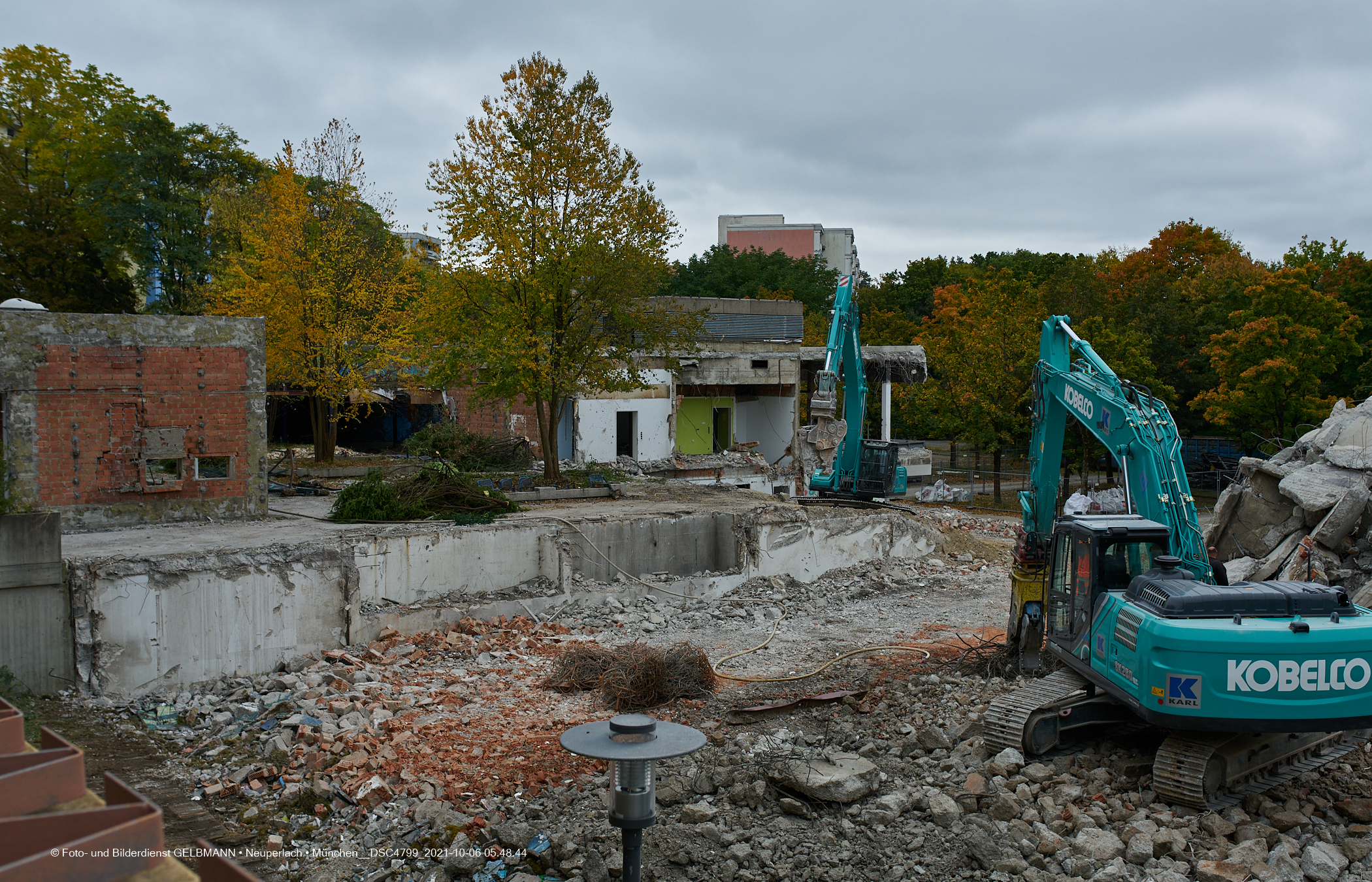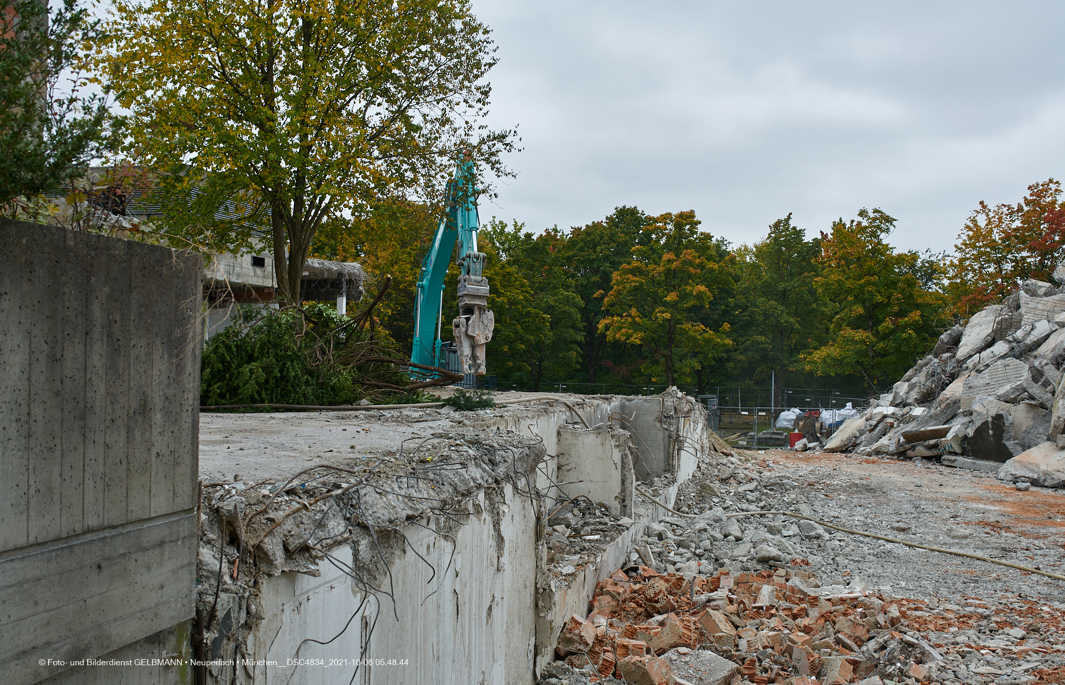 Inzwischen sind drei Bagger dabei, unser Quiddezentrum zu bearbeiten. Ein Bagger zerkleiner die Betonbrocken so, dass sie später in einer Presse zu noch kleineren Brocken gepresst werden können. Die anderen beiden Bagger sind weiter mit dem Abriss beschäftigt.