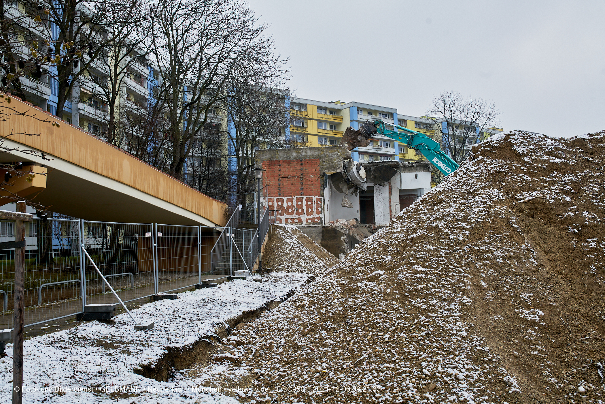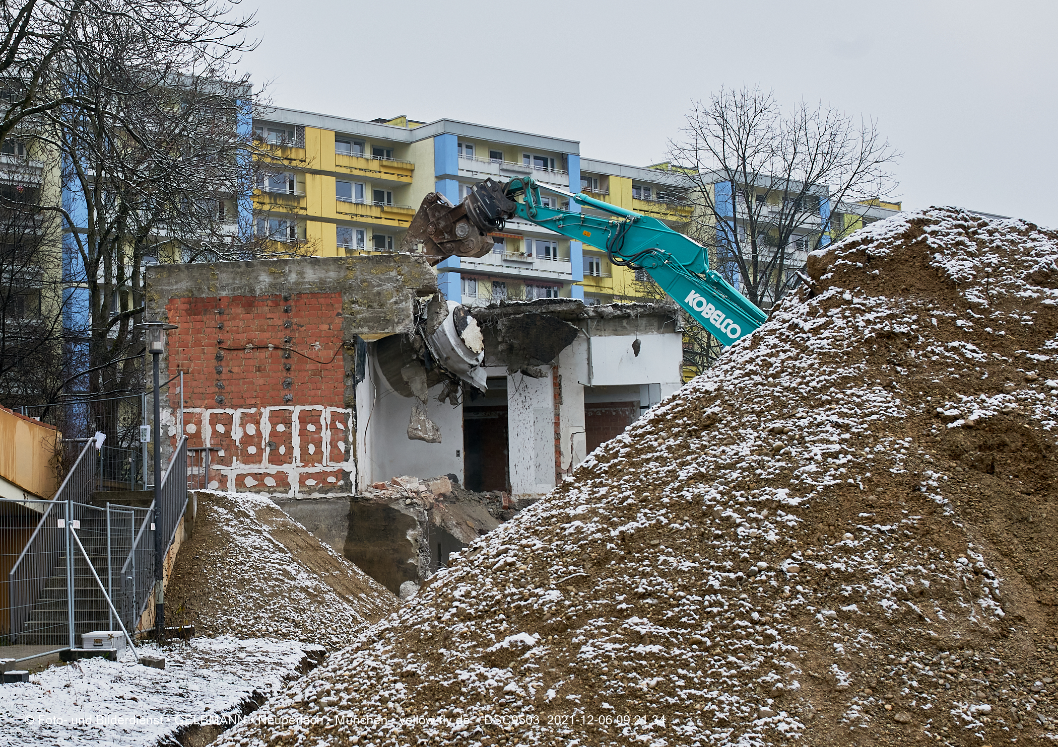 Heute am Nikolaustag, wurde damit begonnen, das letzt nochstehende Gebäude des Quiddezentrums abzureisen. Da bis auf wenigen Wänden,