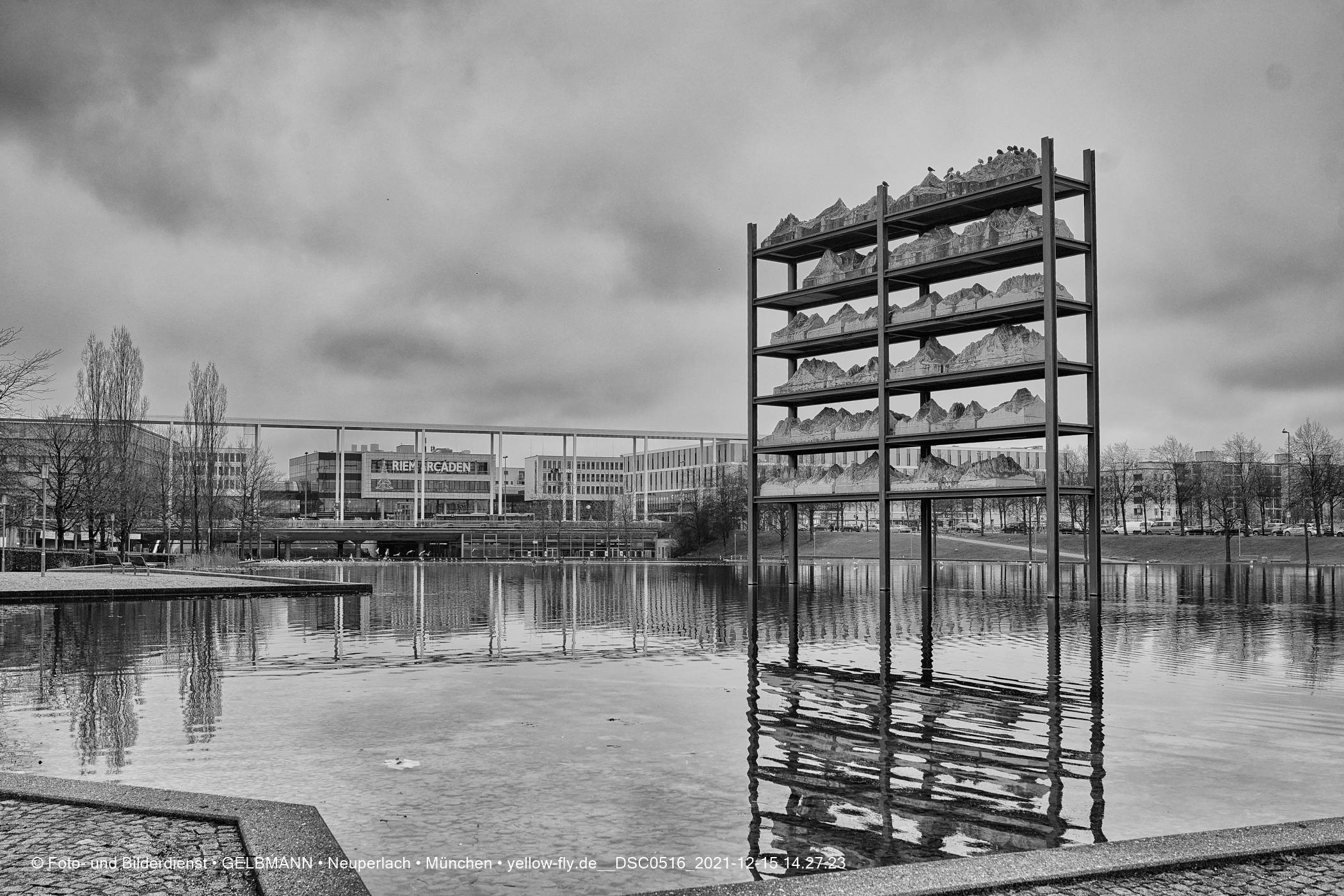 Das Wetter verhindert, dass man im Augenblick die Berge sieht. Auf dem Weg zum Boostern, komme ich an dem Riemer See vorbei, wo ein Kunstwerk die Alpen zeigt. Das Boostern selbst verlief wesentlich schnelle und reibungsloser, als wie ich vorher gedacht habe. Also auf geht's, entweder mit dem Bus, oder besser noch, zu Fuß.